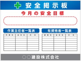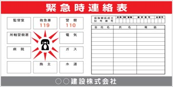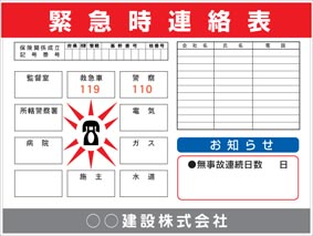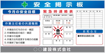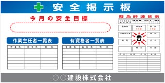 安全掲示板・緊急時連絡表・工事看板 |