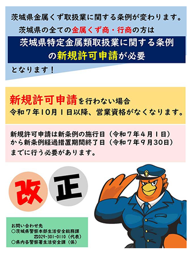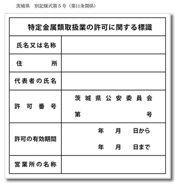 | 茨城県:特定金属類取扱業の許可に関する標識・看板の販売始めました。 |