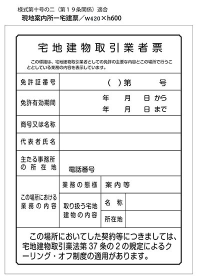 | 宅建業法、様式第十号の二(第十九条関係)A2サイズW420×H600 |