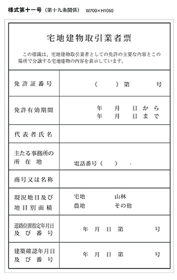 | 宅建業法、様式第十一号の三(第十九条関係)A2サイズW420×H600 |