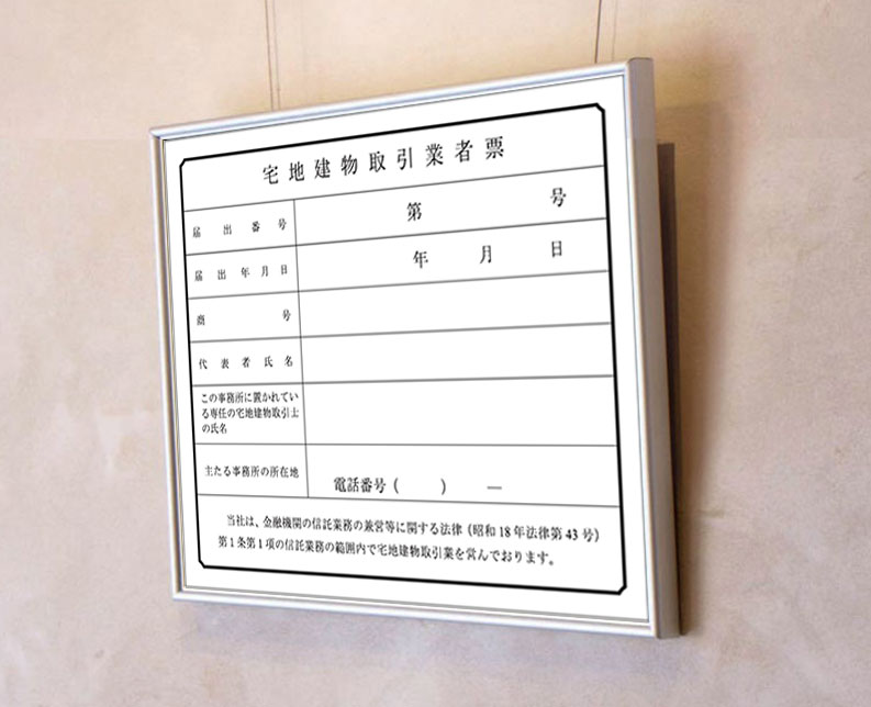 | 宅建業法、様式第二十九号(第十九条関係)のポスターとアルミフレームタイプ |