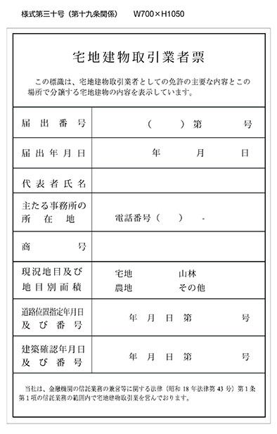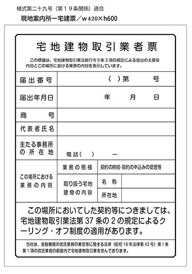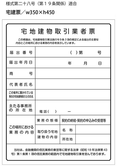| 宅建業法、様式第二十九号(第十九条関係)A2サイズW420×H600 |