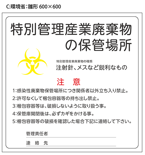 感染性廃棄物保管場所看板W600×H600/Cタイプ |