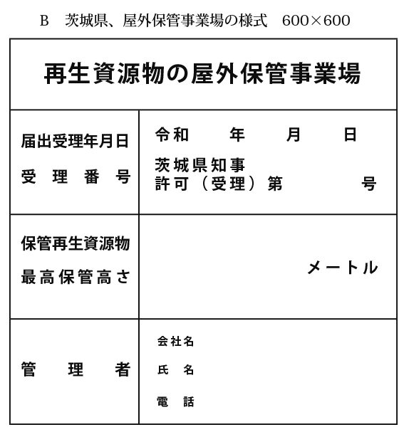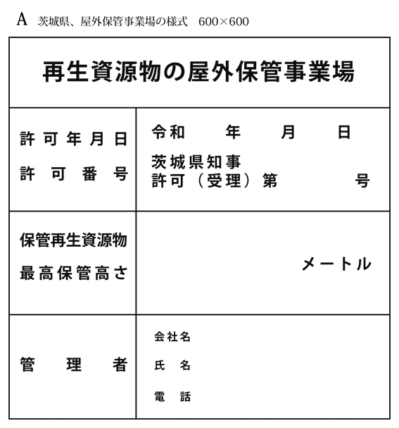 | 茨城県:再生資源物の屋外保管事業場の看板・標識の販売 |
