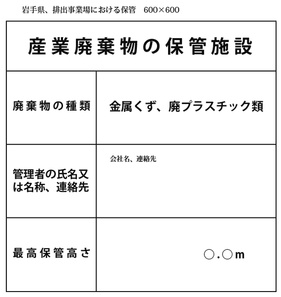 | 岩手県:産業廃棄物の保管施設の看板・標識の販売 |