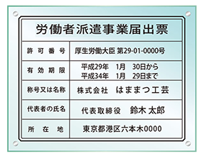 | 労働者派遣事業者届出票ガラス色・アクリル看板 |