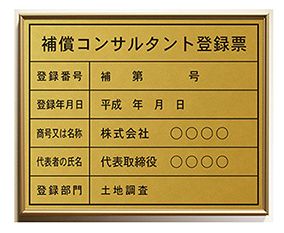 補償コンサルタント登録票のゴールド鋼板タイプ看板 |