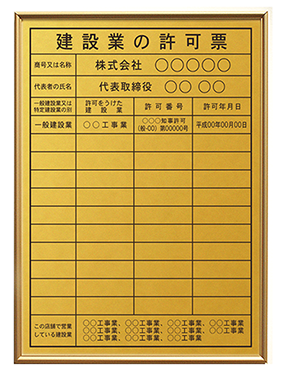 建設業の許可票・定番仕様・・6工事業以上を推奨 |