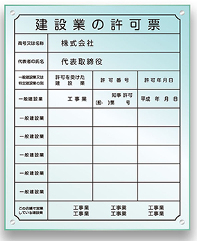 | 建設業の許可票・高級アクリル 5工事業までにお勧め |