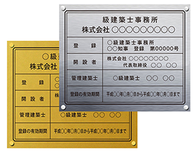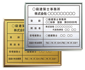建築士事務所登録票のゴールド鋼板タイプ看板 |