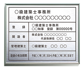 | 建築士事務所登録票のステンレスタイプ看板 |