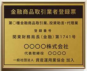 | 金融商品取引業者登録票の定番仕様の看板 |