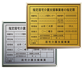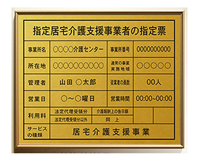 指定居宅介護支援事業者の登録票のゴールド鋼板タイプ看板 |