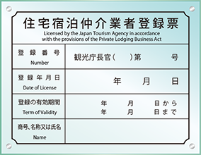 | 住宅宿泊仲介業者登録票の定番仕様の看板 |