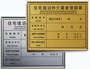 住宅宿泊仲介業者登録票のゴールド鋼板タイプ看板 |