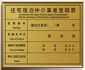 住宅宿泊仲介業者登録票の看板 |