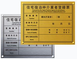 | 住宅宿泊仲介業者登録票のステンレスタイプ看板 |