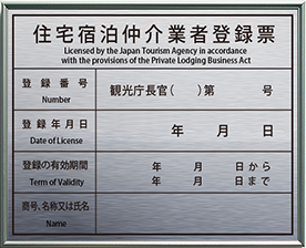 | 住宅宿泊仲介業者登録票・屋外対応看板 |