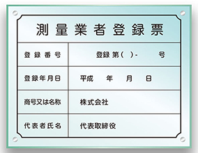 | 測量業者登録票の高級ガラス色・アクリル看板 |
